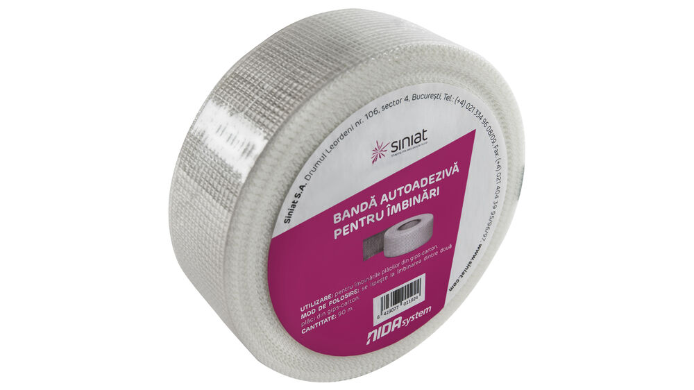 Самозалепващата се лента е лента от фибростъкло под формата на мрежа с отвори (3х3 мм), върху едната страна на която е положено залепващо вещество за закрепване към плоскостите от гипсокартон.